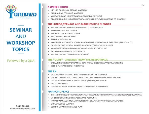 The group was then divided into two separate rooms. The men went to form a circle and a round table discussion ensued with Rabbi Ehrlich moderating it. The women also sat in a circle as Mrs.Chaya Leah Ehrlich spoke. She talked of mountains and peaks and the prize for all to take. The concept of ' We Arrived' on that beautiful Summit (after an exhausting trek!) and although each person's journey is unique and individual, the one climb we've all chosen to ascend, was finding the courage within to take a leap of faith and remarry! She spoke of "having the ability to have fun" in the often chaotic times. She talked about the importance of cherishing and looking out for the gorgeous break-throughs and unexpected moments of nachas and camaraderie. Her message rang loud and clear- " You were chosen for this task, you can do it, but first you have to nurture your marriage, celebrate your marriage, and invest in your relationship in order to truly be successful. The kids will all eventually fly the nest Beezras HASHEM, AND THE TWO OF YOU WILL LIVE TOGETHER TO SHARE THE NACHAS!"